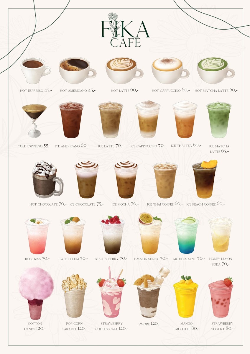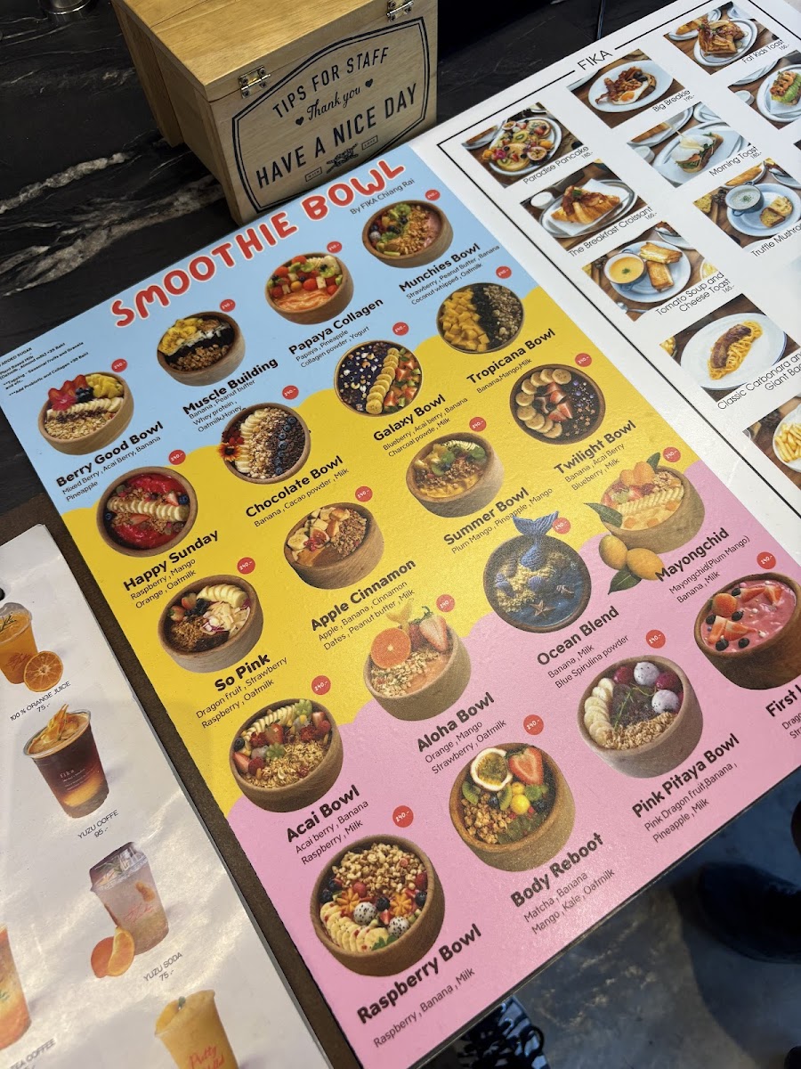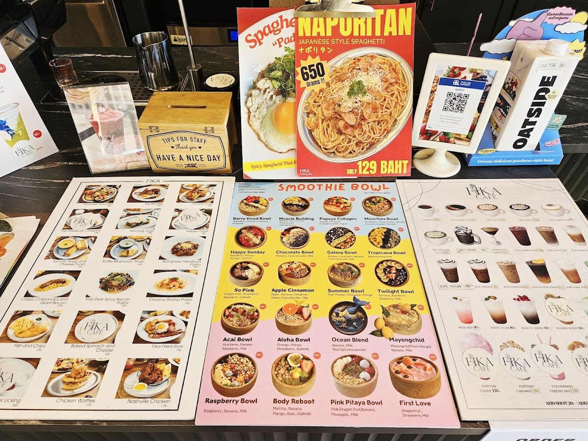 The Fika Cafe Menu offers a delightful selection of dishes and drinks, perfect for any time of day. Located at 428/9 Thanon Baanpa Pragarn Road in Chiang Rai, this cozy cafe invites you to unwind and enjoy a warm, welcoming atmosphere. Whether you’re in the mood for a rich coffee, a refreshing tea, or something more substantial, there's something for everyone here.